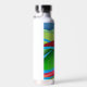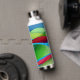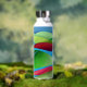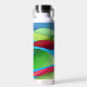 Eine abstrakte Landschaft mit lebhaften Farben und Texturen, die Hügel in grünen, blauen, zyanfarbenen, roten und rosa Schattierungen zeigt.