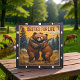This colorful square wall clock features a dimensional illustration of two brown bears hugging in a mountainous forest setting. The artwork is rendered in vibrant brown, green, and orange tones, strongly suggesting a deep carved relief or Engraved Wood Look. The bears have highly textured fur and are positioned against an orange and yellow sunset sky. The background includes stylized pine trees and layered mountains, while the foreground features large boulders and textured grass. The large, three-dimensional embossed text "BESTIES FOR LIFE" is carved across the top. The clock face features a simple clock face border with large, white, numbered tick marks (1 to 12) integrated into the outer frame. The artwork is surrounded by a thick, dark brown decorative border that resembles a black wood frame.