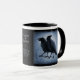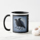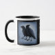 Huginn und Muninn, Gedanken und Gedächtnis beziehungsweise bedeutend, waren die Raben von Odin der Hauptgott der Skandinaviermythologie. Odin versendete die Raben jeden Tag, um alle zu lernen, die sie konnten über, was Ereignis in den neun Welten ist. Am Ende jedes Tages Huginn und Muninn würde zu Odin zurückgehen und sagen ihm allem, dass sie beobachtet hatten. Diese Tasse stellt die zwei Raben dar und hat eine kurze Beschreibung mitten in dem Entwurf.