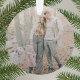 Einfache, stilvolle, trendige Weihnachtsbaumschmuck mit minimalistischem Schriftzeichen-Zitat "Hugs Liebe & Joy" in Weiß mit einer klaren, weißen Grenze. Der Name und die Begrüßung lassen sich einfach für eine persönliche Touch anpassen. Ein gewagtes, minimalistisches und zeitgenössisches Weihnachtsdesign mit einem orangefarbenen Terrakotta-Rost hebt sich in dieser Urlaubssaison von der Masse ab! Das abgebildete Bild dient nur zur Veranschaulichung, um durch Ihr eigenes Foto ersetzt zu werden. Das Bild des Platzhalters ist von einer Familie, die im Wald herunter geht. Die Mama und der Vater umarmt und tragen eine neutrale Farbpalette, ihre bezaubernde Tochter trägt einen rosa Mantel und einen grauen Strick und ist neben dem Haustier stehend, einem wunderschönen Zauberhund. #christmas #Foto #ornament