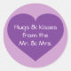 Dieser individuell gestaltete Rundaufkleber weist ein lila Herz auf, überlagert durch den Vorlagentext "Hugs & kisses from the Mr. & Mrs." im Zentrum. Der lila Herzklopfer ist eine große feierliche Ergänzung zu Weinflaschen, Bonbons, Geschenktaschen oder anderen Gastgeschenke für Verlobungsfeiern, Brautparty, Proben-Dinners, Hochzeiten, Jubiläumsfeiern, Geburtstage, Taufen oder Valentinstag.
