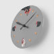 Eine leichtfertige Uhr für Geflügel lockert mit vier Huhnporträts auf - zwei zusammenpassende schwarze Hennen geht links und rechtes, eine größere schwarze Henne voran, die unten von der Spitze betrachten, und eine weiße Sussex-Henne der Unterseite. Die Zwischenstunden sind kleine Eier. Ein Stückchen des Spaßes für die Küche:) ist diese Version mit einem dunkelgrauen Hintergrund, der unter Verwendung des besonders anfertigen Knopfes geändert werden und redigieren kann.