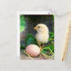 Ein zauberhaftes Baby Huhn mit einem rosa Osterei.