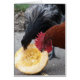 Ein schwarzer Kupfer-Maran-Hahn und ein blauer Sumatra-Hahn, der einen Kürbis isst. Fotografie von Angelandspot im Jahr 2010