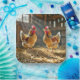 Hühner mit Brille in einem sonnigen Stall Pappteller