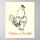 Hühner sind schöne Funny Rooster Art Zeichnend Poster