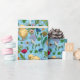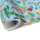 Hühner und Wildblumen in Babyblau Geschenkpapier