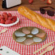 Diese Papierplatte weist Eier verschiedener Blume auf. Ideal für Party und Picknicks.