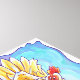 Tierparade Hühnchen, das Sie von der ITD Animal Parade mitgebracht haben, zeigt unsere originale Kunst eines niedlichen gelben und goldenen Hühnchens, stehend in einem Barnyard vor einer roten Scheune und Zaun mit einem strukturierten blauen Himmel mit einer spielerisch scharfen lila Grenze. Gemalt von unserem talentierten Kinderkünstler Traci Van Wagoner.