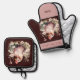 Hühnerhennen in Blume Burgund Pink Ofenhandschuh & Topflappen-Set
