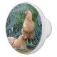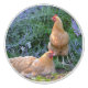 In diesem Keramik-Knopf befinden sich zwei buff orpington hens in einem Hain von russischem Salbei. Copyright: Marjorie Tietjen