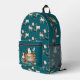 Kinder Rucksack mit Kühen, Ziegen und Hühnern Design. Personalisieren Sie dieses hübsche aquamarine Blue Pack mit Kindernamen. Farm themed Muster ist perfekt für Jungs oder Mädchen und bietet eine lustige Sammlung von Barkeeper-Freunden. Über den Reißverschluss und die Seitenkreuze stehen mehr Tiere. Die Namensvorlage ist über einem rustikalen Holzschild auf der Reißverschlusstasche.