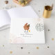 Babydusche mit Henne und Baby mit rosa, beige und schludrigem Design an den Ecken. Das Kätzchen trägt einen rosa Bug.