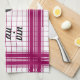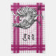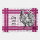 Französisches Rezept "Coq au vin" , große schwarz-weiße Hahn auf bordeauxfarbenen traditionellen Gitter gedruckt.