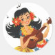 Niedlicher Vintager Cartoon eines schwarzen haarigen Mädchens im Grasrock, das eine Ukulele spielt.