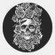 Human Skull Roses Goth Biker Art Illustration Runder Aufkleber