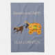 Humble Pferde Kürbisköpfe Horseman & Pumpkin Karosserie Halloween Küchentuch, oben mit den Worten "demütig und glücklich", und "HALLOWEEN" am Boden des Handtuchs, die Kunst wird von Disneys Ichabod-Krane und kopflosen Pferd und Fahrer, einem Pferd mit Kürbiskopf, inspiriert, sind demütig, während sie einen romantischen Kürbis zum Kürbis. Kunst von Kristie Hubler
