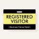 Dieses Corporate Abzeichen Design beinhaltet die Meldung "REGISTRIERTER BESUCHER", einen benutzerdefinierbaren Firmennamen oder eine andere benutzerdefinierte Nachricht. Ein Abzeichen wie dieses könnte dazu benutzt werden, zu zeigen, dass jemand in einem Unternehmen oder am Arbeitsplatz ein autorisierter Gast oder Besucher ist. [~Z0000307]