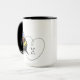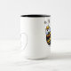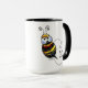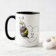 Gedenken Sie Ihre Liebe mit einem niedlichen Sake. Tinte und Bleistift zeichnend, die eine Hummel in winziger roter Bogen-Krawatte darstellen, bilden einen herzförmigen Pfad. Kunst und Design von Andie.