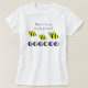 Gelb lächelnde Hummeln mit schwarzen Streifen und flatternden Flügeln. Mit dem Sprichwort geht viel los. BABIES ist in schwarz geometrische Kreise mit rosa und blauen Buchstaben geschrieben. Original Artwork and Design von TamiraZDesign.