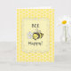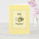 Nette Hummel-Biene, die ein Gänseblümchen auf einem Honigkammhintergrund hält