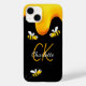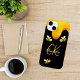 Ein stilvoller schwarzer Hintergrund und glücklich lächelnde Hummeln. Dekoriert mit süßem, goldenem Honig, der tropft. Personalisieren und fügen Sie Ihren Namen und Ihre Monogramm-Initialen, goldfarbene und weiße Buchstaben ein. Der Name wird mit einem handgeschriebenen Stilskript geschrieben.