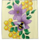 Niedliche kleine Biene in einer lavendelfarbenen Blume mit Wabenbäumen und gelbem Hintergrund.