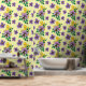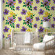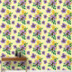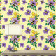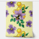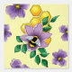 Eine niedliche kleine Biene in einer lavenfarbenen Blume mit Wabenbäumen und hellgelbem Hintergrund.