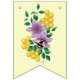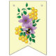 Eine Hummel, die zwischen einer von zwei lavenfarbenen Blume mit Wabenhintergrund und gelbem Hintergrund sitzt