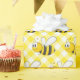 Niedliche Hummelgrafik auf gelbem und weißem Gingham Hintergrund.