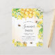 Eine sommerliche Party Einladung mit weißem und goldfarbenem Hintergrund. Mit Hummeln dekoriert, Honig und Honigwabenmilch mit gelben Blumen, Blume und Honiggläsern geschmückt. Personalisieren und fügen Sie einen Namen und Party-Details hinzu. Goldene und schwarze Buchstaben. Ideal für ein Party im Sommer oder Herbst