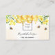 Niedliche Hummeln, gelbe Blüten und tropfender Honig aus Honigwaben. Personalisieren Sie Ihr Firmenlogo, Ihren Firmennamen und Ihren Firmentitel, Ihr Unternehmen vorne, Foto, Kontaktinformationen auf der Rückseite, Ihren eigenen QR-Code auf Ihrer Website.