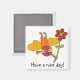 Magnet mit Hummel und Blume - "Viel Spaß!". Sie können diesen Magneten anpassen, indem Sie ihn in einen runden umwandeln, eine andere Größe wählen und auch den Text ändern.