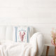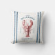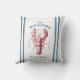 Das Kissen des Coastal Lobster Beach House zeichnet sich durch einen weißen Hintergrund mit einem roten Maine-Hummer und marineblauen Seilstreifen aus. Personalisieren Sie es mit Ihrem Familiennamen und dem Datum in einem klassischen marineblauen Schriftart. Ideal für Zuhause und Hütten am Meer.