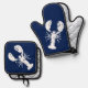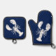 Hummer Seafood Navy Blue und White Elegant Oven Mitt & Pot Holder Set.