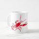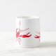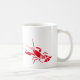 Die Tasse des Kaffees ist im klassisch-weißen Stil mit einem niedlichen, roten Hummerprint zu sehen. Passen Sie dieses Objekt an oder kaufen Sie es wie gezeigt