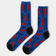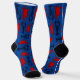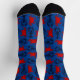 Dunkelblaue gemusterte Socken für Damen und Herren mit Hummer- und Krabbendesign. Dunkelblaue Hummer und rote Krabben knistern über einer königsblauen Hintergrundfarbe. Zehen und Heelse sind schwarz. Ein Geschenk für alle Muschelliebhaber, Meeresfrüchte-Koch oder Seefahrer.