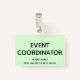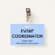 Dieses konservative Abzeichen-Design beinhaltet die Meldung "EVENT COORDINATOR". Ein solches Abzeichen könnte vielleicht dazu verwendet werden, zu zeigen, dass der Träger mit einem Event verbunden ist. [~Z0000307]