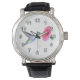 Uhr, Klassische Damenuhr mit schwarzen Lederarmband