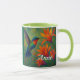 Stunning decorative coffee mug featuring a beautiful humming bird feeding from tropical flowers. Customise with the name of your choice.