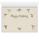 Glückliche Geburtstagskarte für Kolibri-Liebhaber mit Kolibri-Arten, die in den USA zu finden sind, darunter Rufous Hummingbirds, Ruby-throated und Allen's und Calliope Hummingbirds.