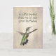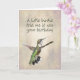 Ein wunderschönes pastellfarbenes Gemälde eines Kolibri mit den Worten "Ein kleiner Birdie sagte mir, es sei dein Geburtstag" darüber.
