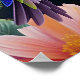 Das Poster ist ein grüner, blauer, violetter und weißer Kolibri, der von einer Vielzahl farbenfroher Blume umgeben ist. Dieses lebendige Werk ist hell und fröhlich, trotz des dunklen Hintergrunds! Wunderschönes Frühling- oder Sommerblumenthema für Vogelliebhaber.