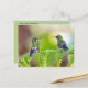 Postkarte mit einigen kleinen, grünen Kolibris, die sich auf einem großen Farnblatt in einem costa-ricanischen Nebelwald unterhalten - Eine schöne Möglichkeit, Ihre Kolibri-Liebe zu zeigen oder einen Gruß an Kolibris oder Costa Rica-Liebhaber zu schicken. Foto aufgenommen in Catarata del Toro, Costa Rica.