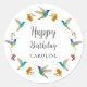Unique personalized birthday sticker featuring hand-painted hummingbirds such as Rufous-tailed and Golden-tailed Sapphire Hummingbirds that can be used for gifts and party goodie bags.