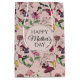 This Hummingbird & Flowers Mothers Day Photo Medium Gift Bag features hand-drawn hummingbirds, bignonia flowers, mushrooms, and wildflowers, against a blush pink background. "Happy Mother's Day" text on the Front and customizable photo and text on the back.