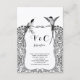 Hummingbird Love Bird Hochzeitsinformation Einsteckkarte. Schwarz-Weiß-Design Schwarze Information Script Briefe Schwarzes Intricate Muster begleitet von einem schönen Humming-Vogel sitzend auf einer Wirblen Zweig über einen Hintergrund von faszinierenden und schönen Mustern mit zwei romantischen Liebesvögeln süß anmutigen einander. Vintage Bird Weddings und Besonderen Anlasses, die vielleicht den Mehndi Bridal Designs ähneln, sind die Bird Wedding Collection perfekt für diese einzigartige Love Bird Wedding. Mit der richtigen Menge an Whimsy und perfekt elegant mit einem märchenhaften Gefühl/ Perfekt für diese romantische whimsical einer einzigartigen Hochzeit. Süß romantisch und voller Laune.