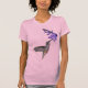 Dieses Shirt zeigt oben rechts ein Bild eines Kolibri, der bei schöner lila Blume füttre.