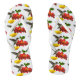 Diese Vögel und floralen Flip Flops zeigen ein sich wiederholendes Muster eines weiblichen rubingebeutelten Kolibris. Sie schwebt in der Luft, während sie Nektar vom goldenen Zentrum einer leuchtend roten Zinnia-Blume trinkt. Eine gelbe Zinnia-Blüte befindet sich in der Nähe und einige grüne Blätter vervollständigen die Komposition. Was für eine schöne Idee für Gärtner oder Vogelliebhaber!