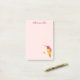 Post-it-Notizen haben Ihren Namen oben auf einer hellrosa Seite mit einem roten und gelben Kolibri in der unteren rechten Ecke.